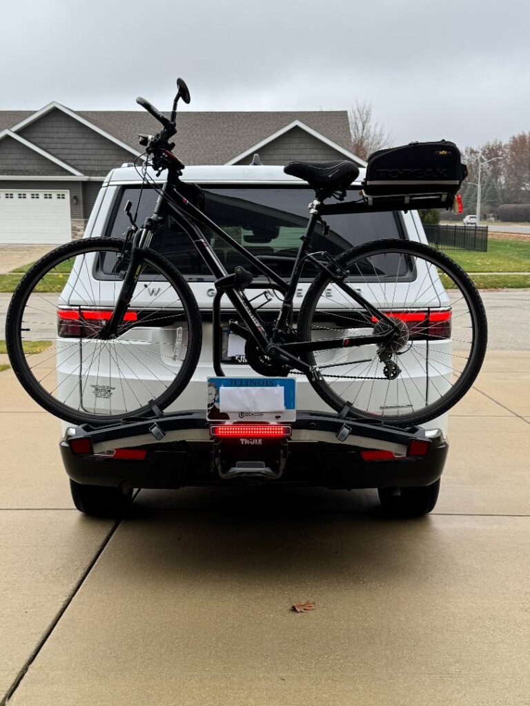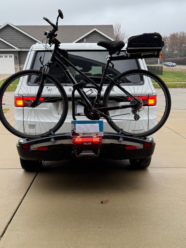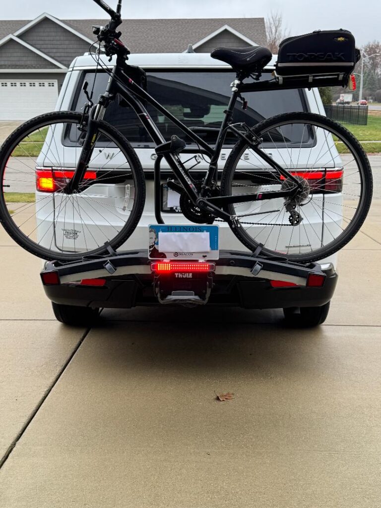 This is a really good product. Mount is really solid and placement is flexible, lights are very bright, and I feel better knowing that I’m less likely to get a ticket or rear ended for obscuring important stuff. Customer service has been very transparent in that it doesn’t guarantee that a ticket won’t be issued related to the plate, but spirit of the law and per several LEOs, this is probably the most legal way to haul bikes on the hitch/trunk. Did require the install of the hitch and 4 pin harness, but most won’t need to worry about that. And local business is being supported, and who would have a problem with that?